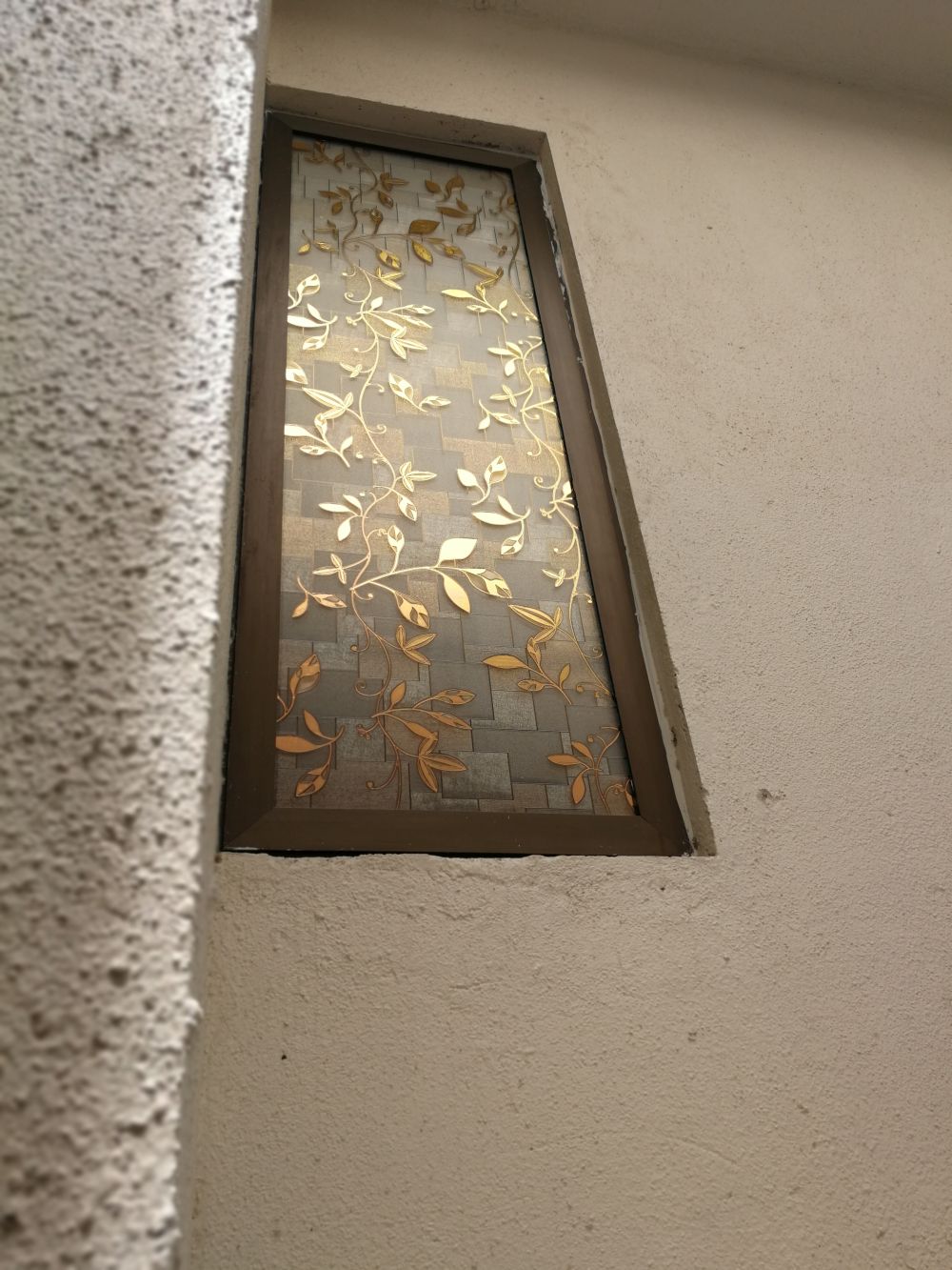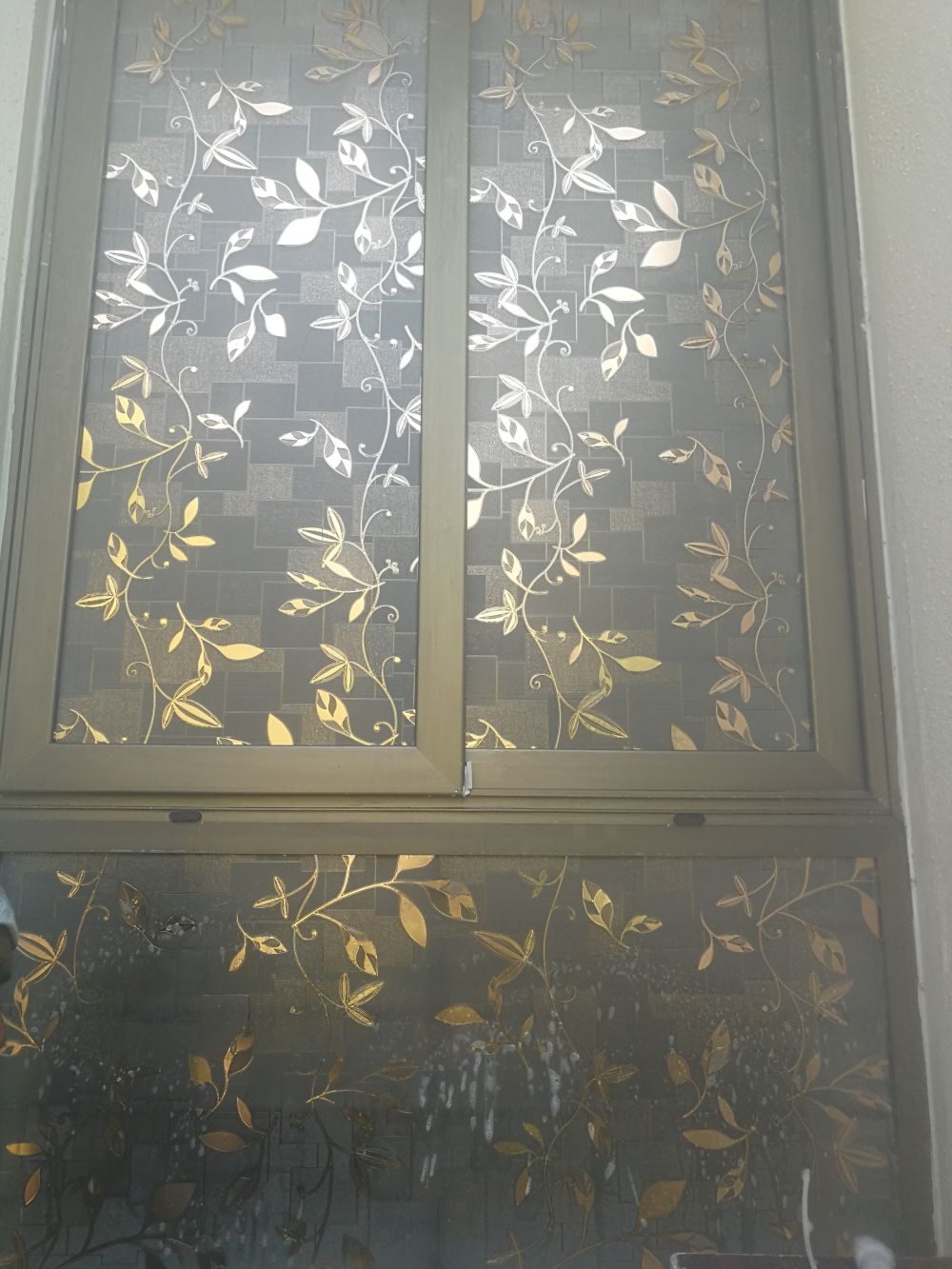 The below images are taken from an installation site, where Casa Embossed Golden Leaf design is installed on the outer surface of windows.