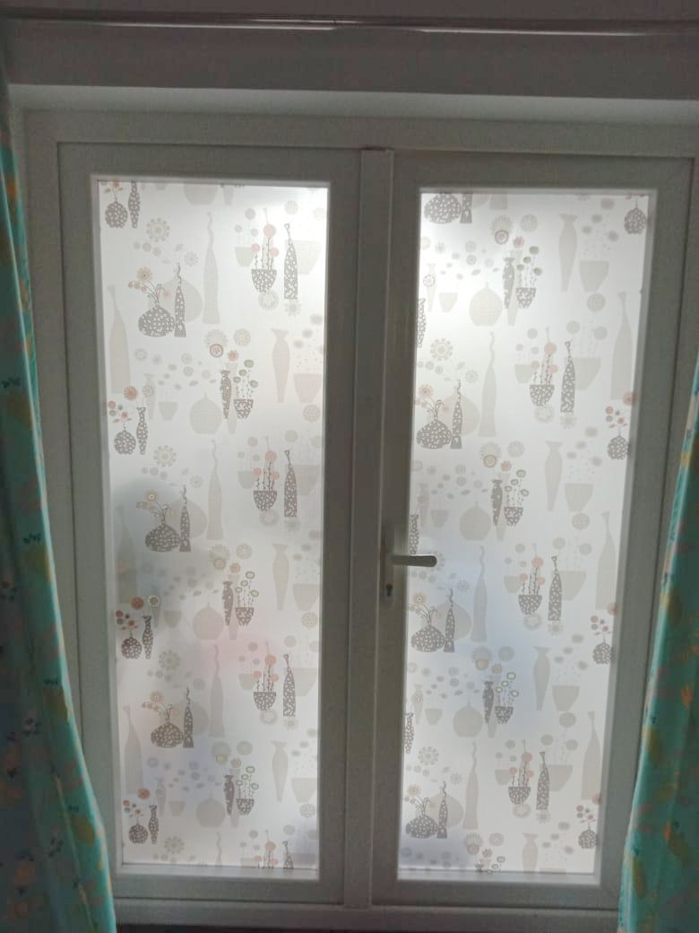 The frosted films can also be used as stylish alternative to nets and curtains. They allow 90% of the light to pass through the windows or doors, thus maintain the brightness inside the house.