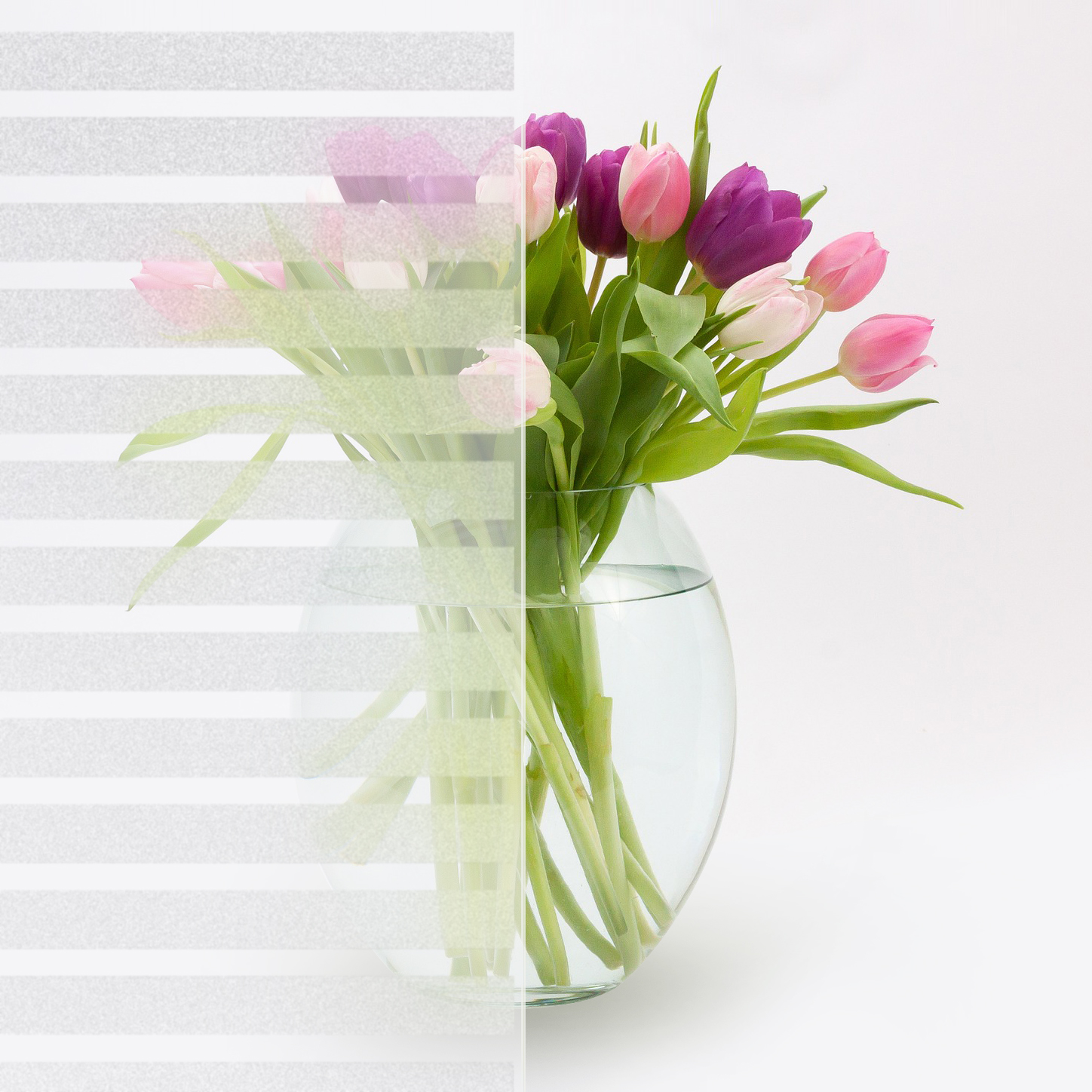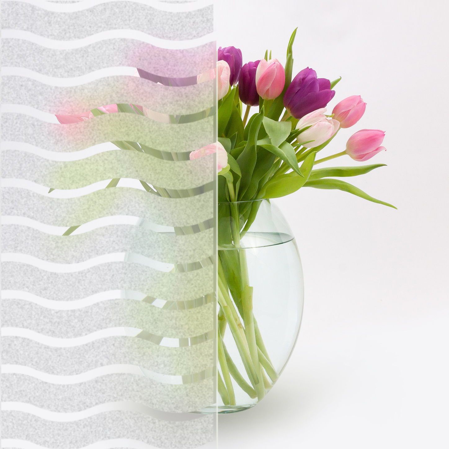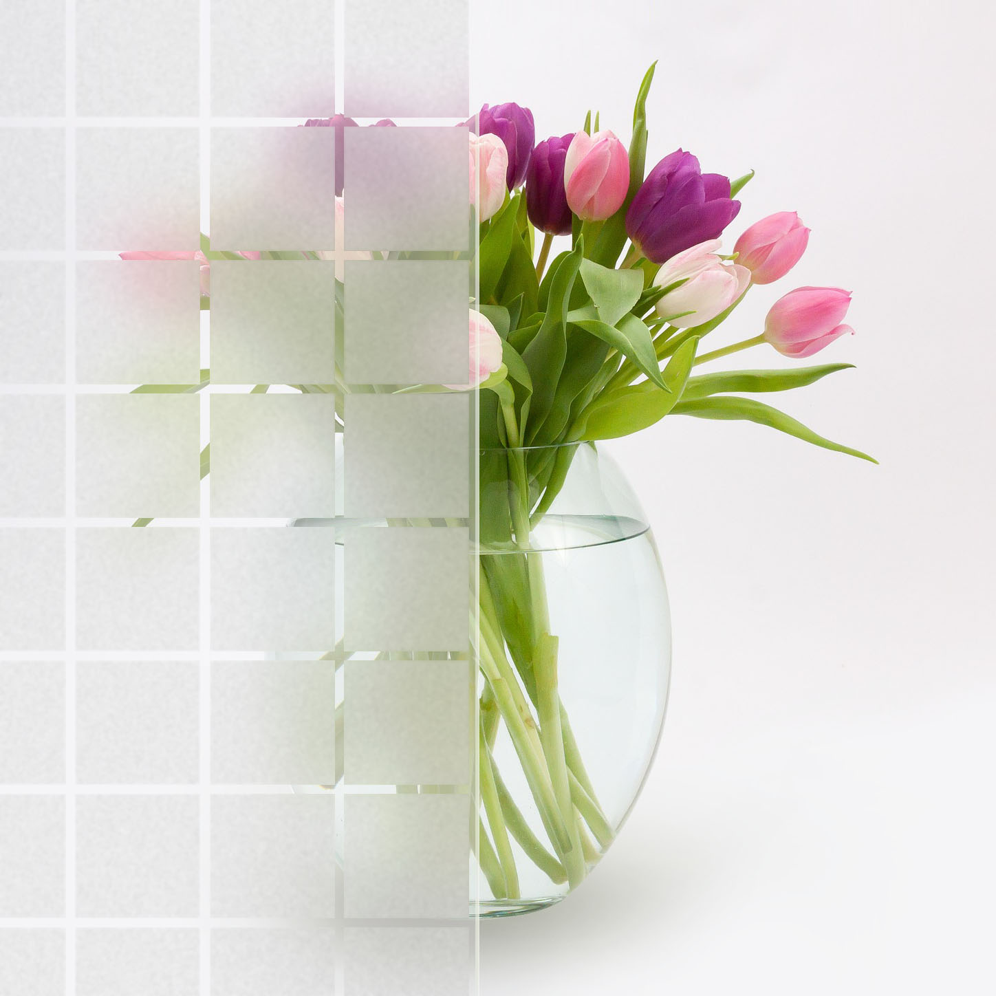 The designed film arrives in different colored or white patterns ( geometric and floral). This is used as decorative window film as well as privacy film. Check the Glass Films page for more design patterns