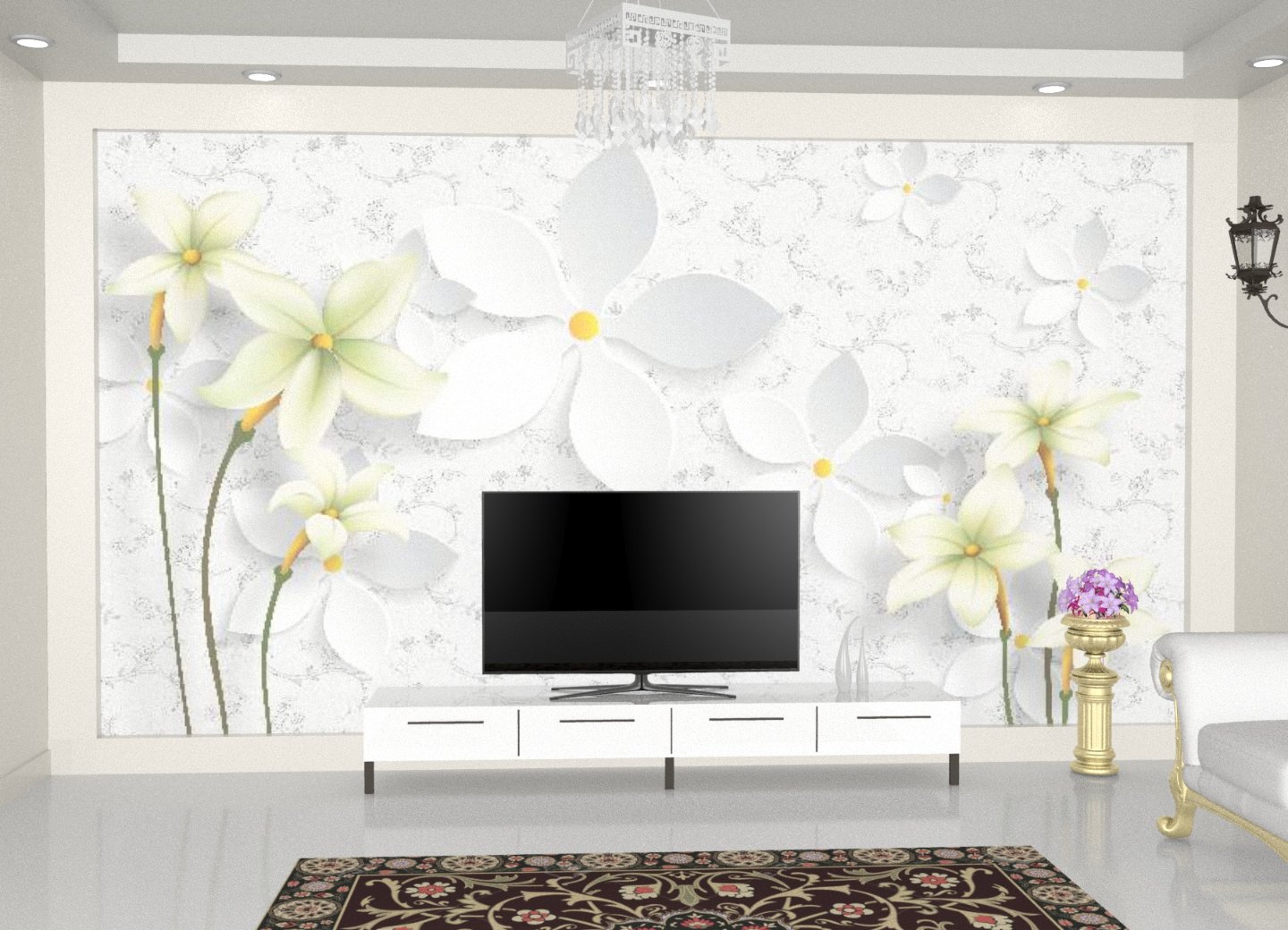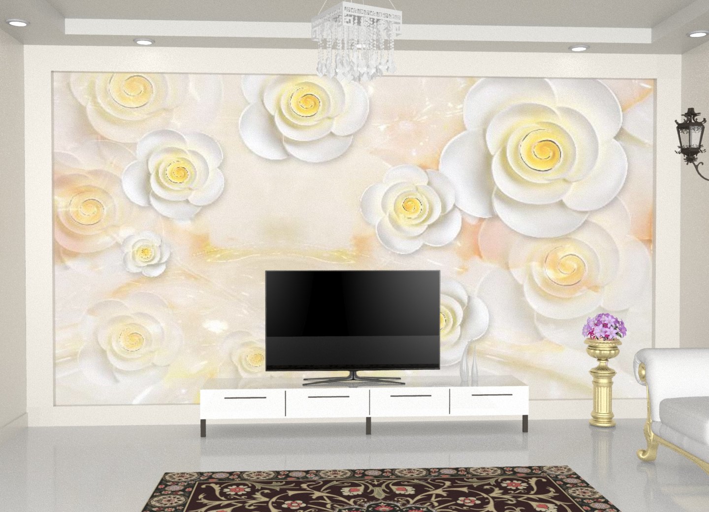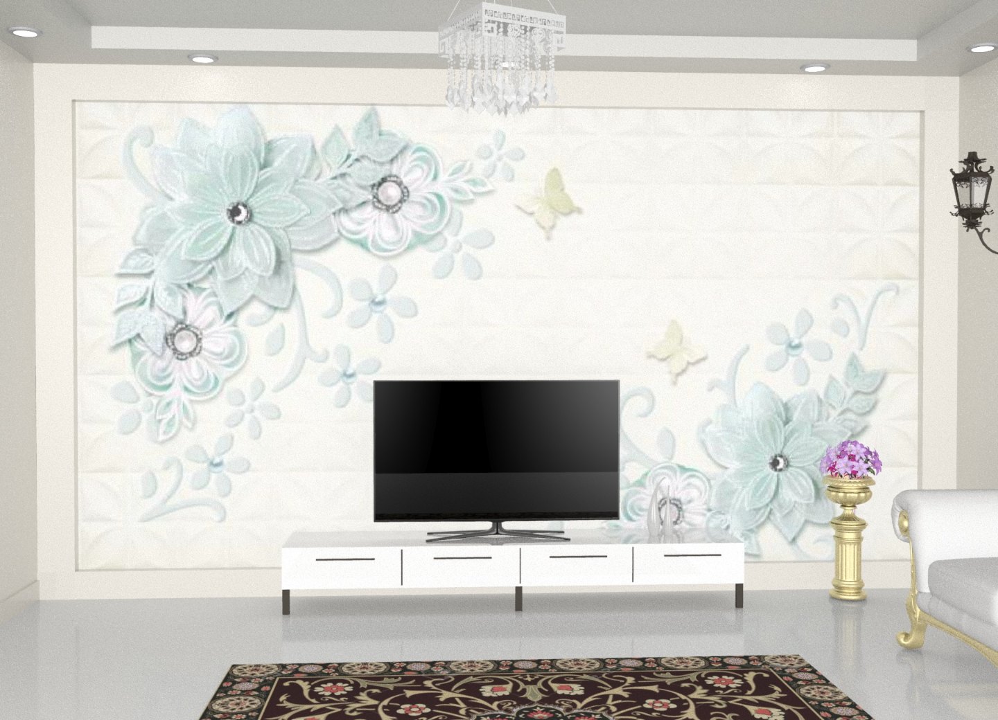 3D wallpapers are embossed patterns that give 3 dimensional touch. For example, brick wallpapers have embossed brick structure and floral wallpapers have embossed flowers and leaves.Â